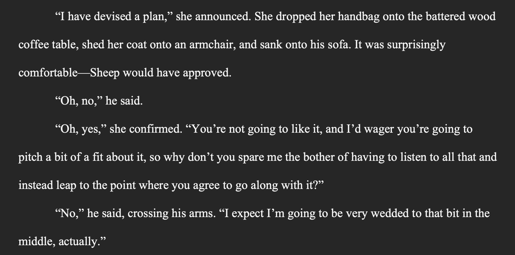 In November 2021, I was between deadlines and had a lot of free time because I’d moved to Maine and started working part-time, so I wrote an incredibly sloppy zero draft of this book for NaNoWriMo (a zero draft that bears almost no resemblance to the final iteration of the book, aside from the characters’ names; that one, for a start, was set in a fantasy world, while the final books is set in [a somewhat AU but still very recognizable!] London). I then set it aside, because I sold the final two books in my Regency series and needed to write To Swoon and to Spar.